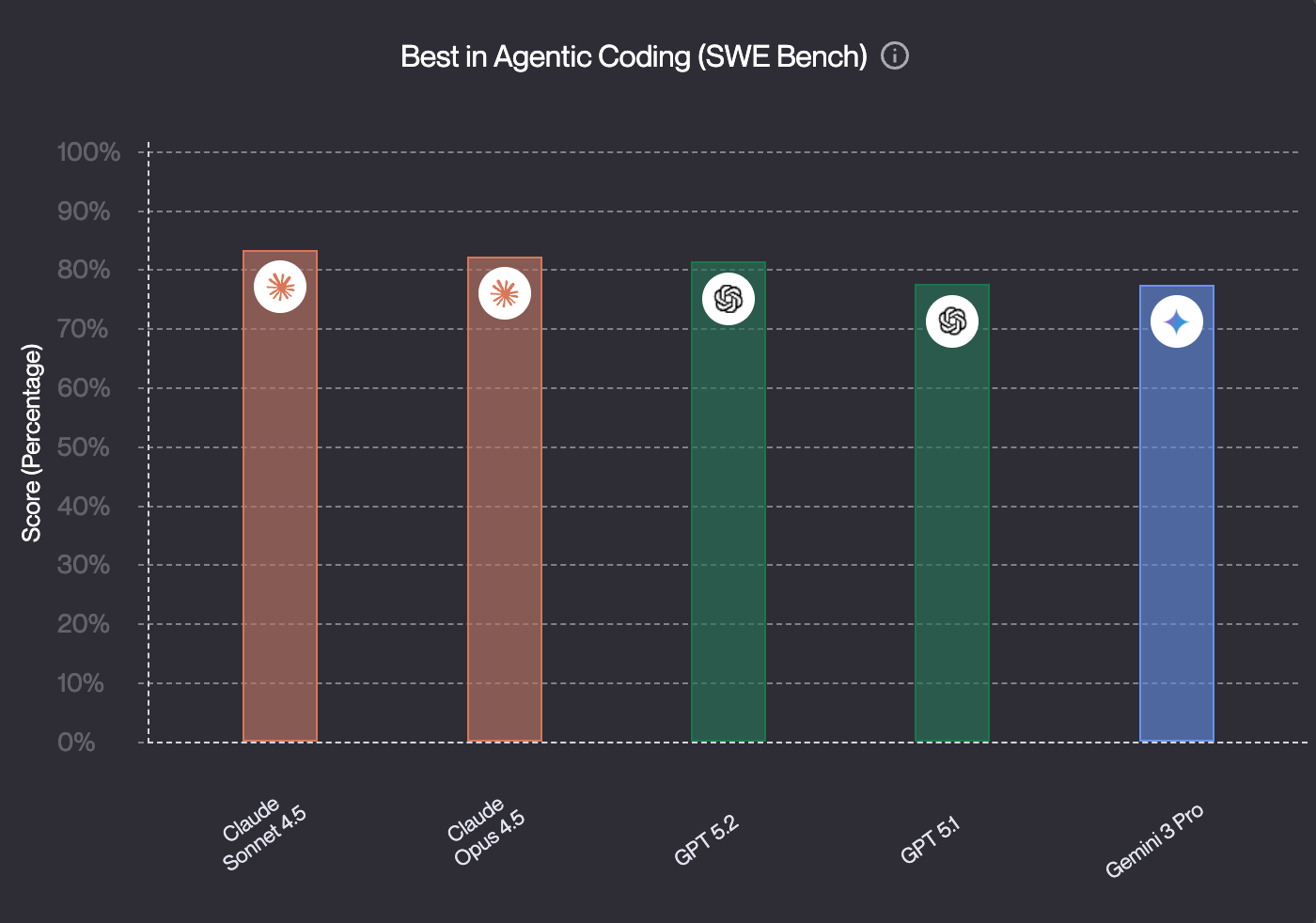 Vellum shared public leaderboards for evaluating LLM performance. The diagram below shows coding performance (last updated 18 Nov 2025).